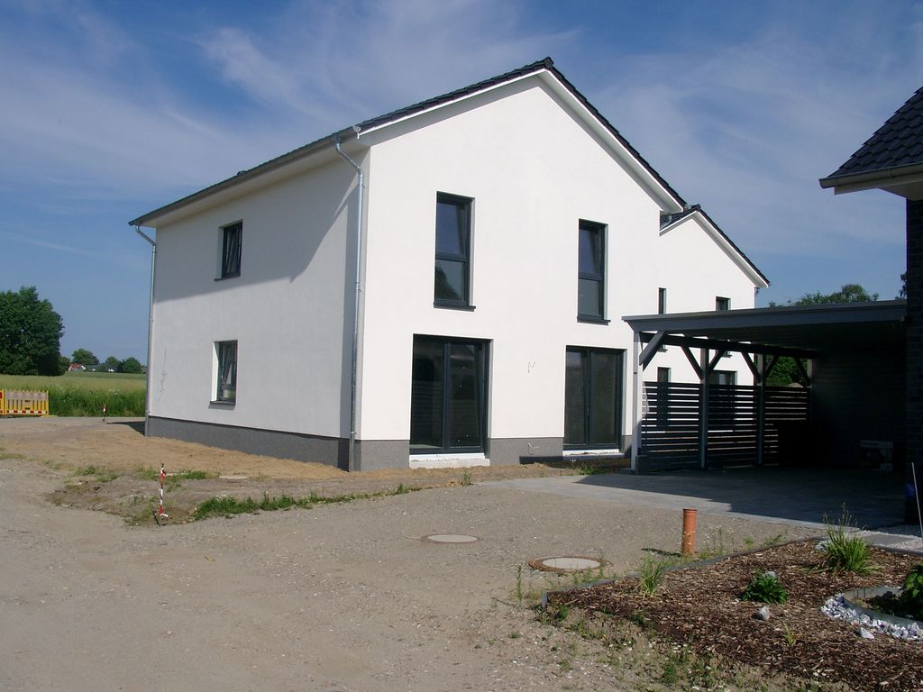 Das Haus steht, noch zu vollenden sind die Außenanlagen. | Foto: privat | Haus bauen, Style at ...